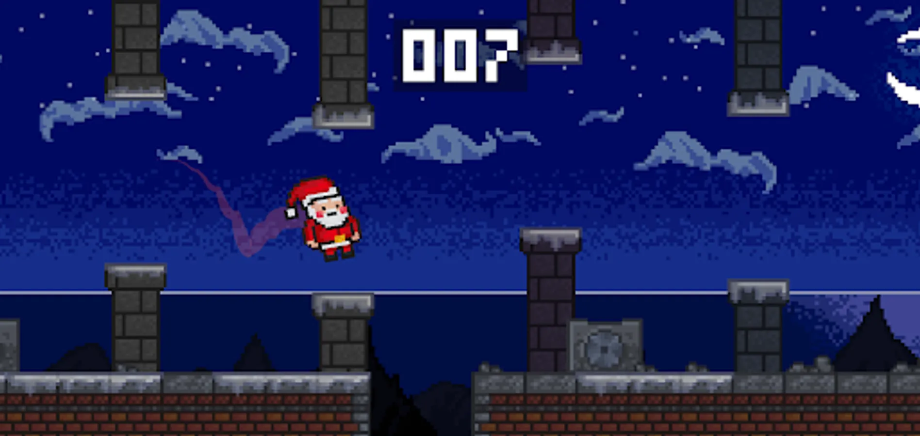 Play as Santa Claus, run across rooftops and try to rack up a high score! Soar through the sky and last as long as you can without whacking into a chimney.