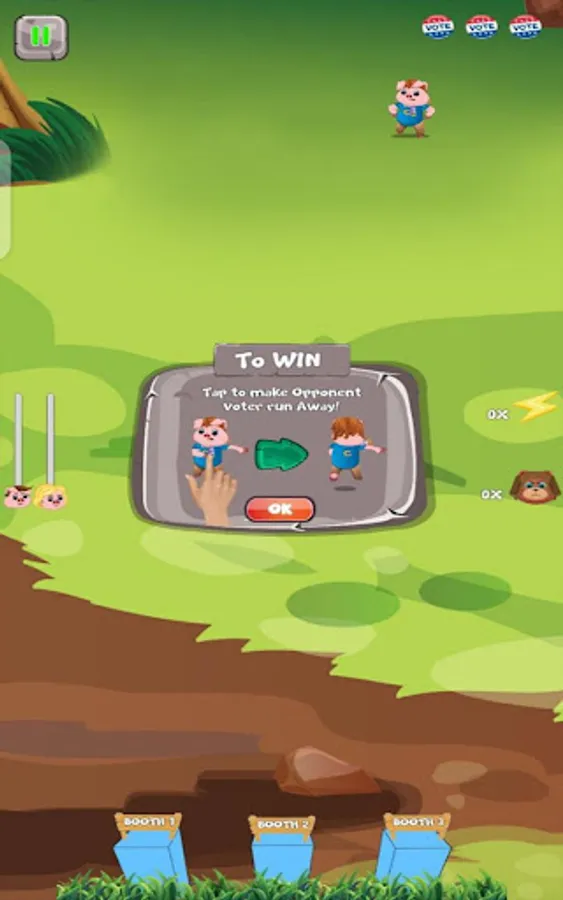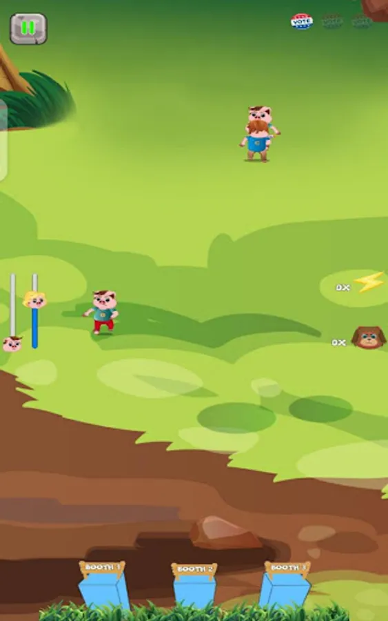 Dona has the same powers he used in The Wall Between US and he also has some new ones now. His old powers no longer kill anyone but instead either stuns Binton’s pigs or forces them to run away when hurt. Now Dona must use cash to buy his abilities. Over time, and as his pigs vote, Dona will earn more cash to use.