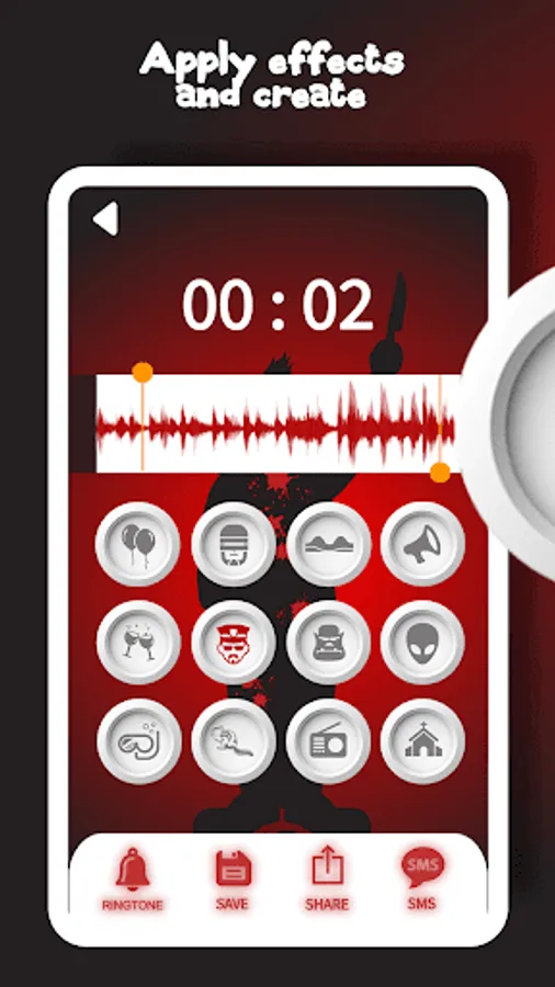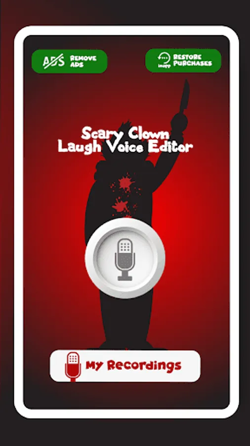 Experience distorted voice editing and sound like a clown. Use the Halloween voice changer with effects to make scary sounds. Use your new evil laugh of a clown for Halloween ringtones. Sound like that evil clown everyone's afraid of. Creating scary voices is fun! Laugh into the microphone like a true villain and record horror voices! Halloween voices editor awaits!
