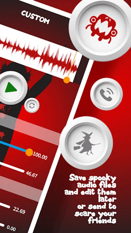 The scary voice changer and recorder helps you scare your friends and make people laugh. Use it to create spooky notification sounds for text messages and horror audio recordings that you'll send to someone as a message or use as a ringtone. Record yourself singing a creepy song or laughing with an evil laugh and apply scary monster voice effects. To complete your evil laugh recording, you can modify your voice further with custom adjustments. The voice editing tools in this app also include echo distortion, pitch change, and more. So, if you want to sound like a clown from horror movies, this app can help you. Download free voice changing app and start preparing for the scariest Halloween time!