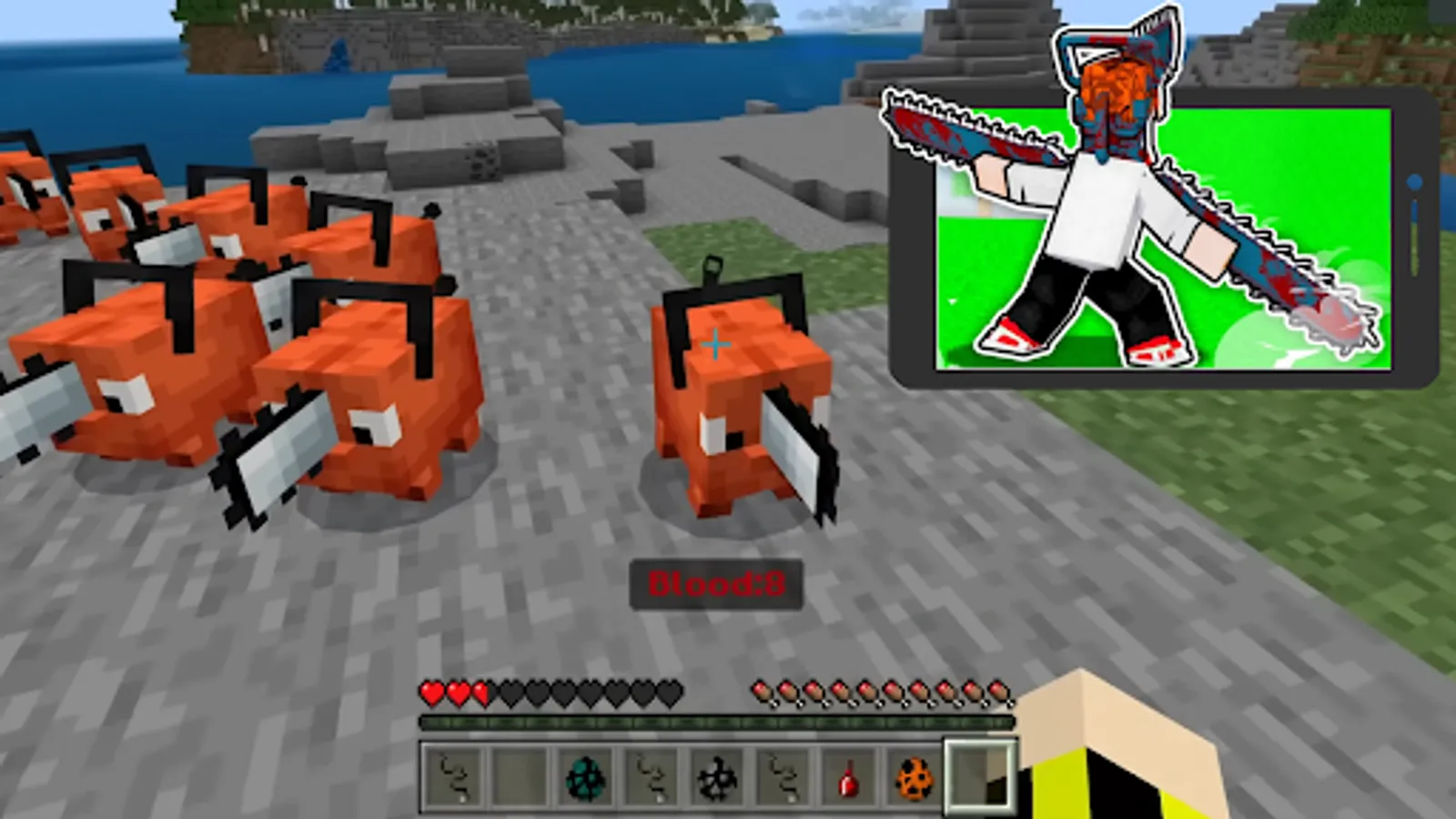 The Chainsaw Man mod for Minecraft PE is a modification that adds a new character to the game - Denji, the main character of the popular manga and anime series Chainsaw Man. Danji is a powerful demon hunter whose main weapon is a chainsaw, and this mod allows players to play minecraft as him or simply transform into his skin.