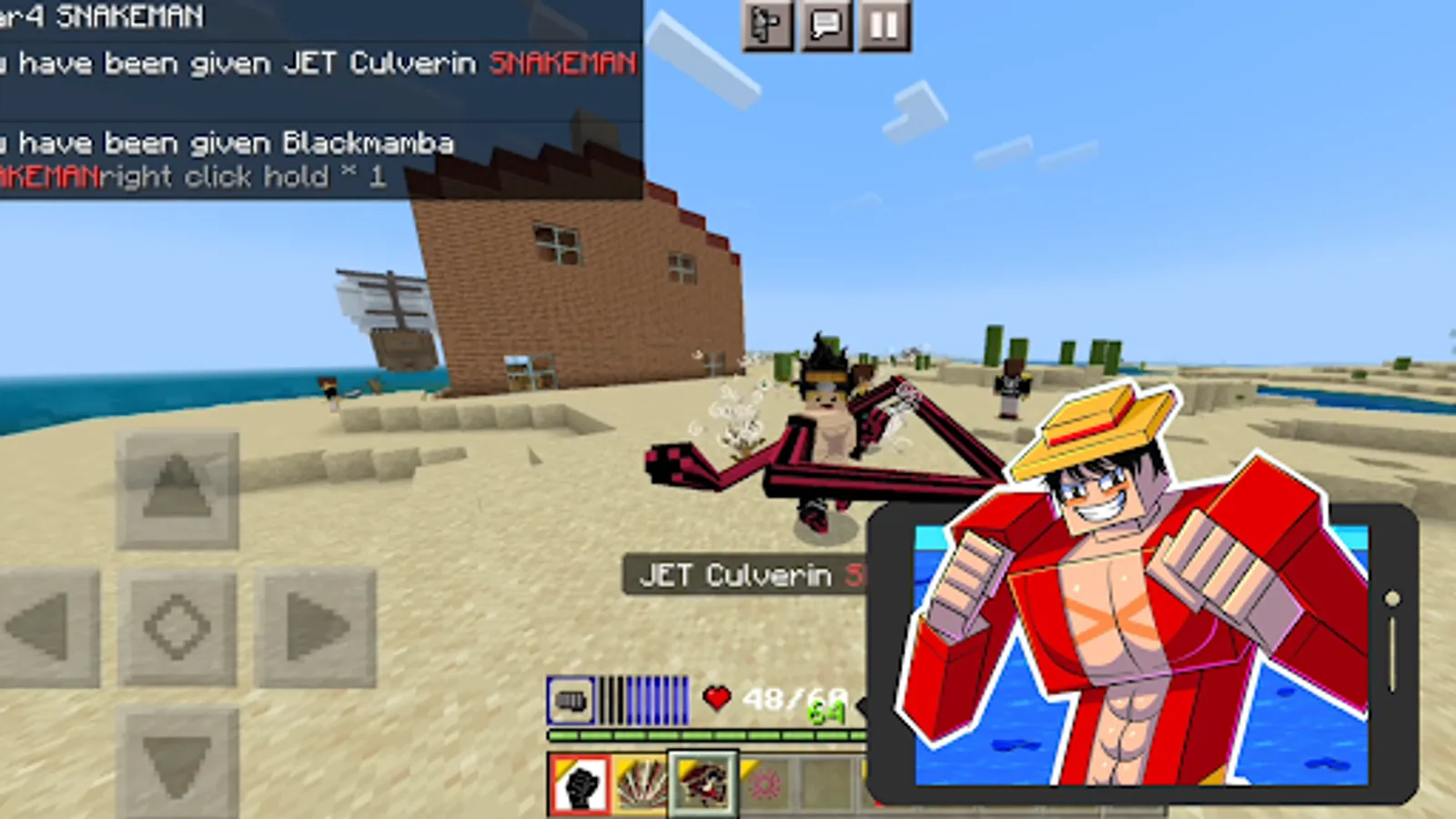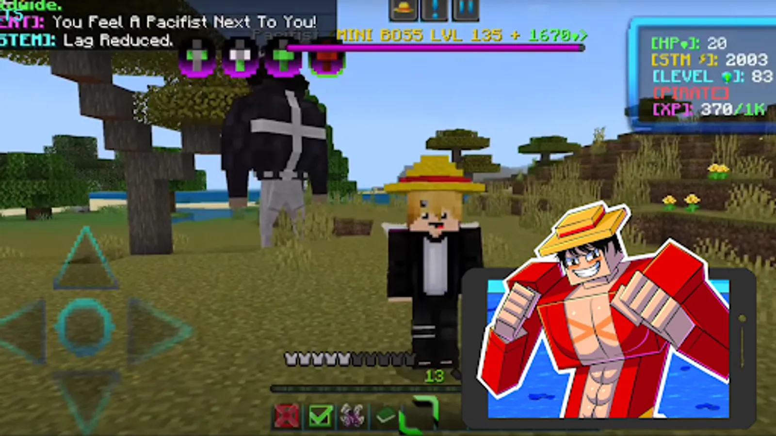 Constant updates will support the most current versions of minecraft, thus the gameplay will never get old. The texture pack will transform the familiar mcpe world, new abilities will allow you to break blocks, mobs and even buildings. Creative mode will open up a fabulous world of One Piece for beginners where each manga hero can be called from a summoning egg.
