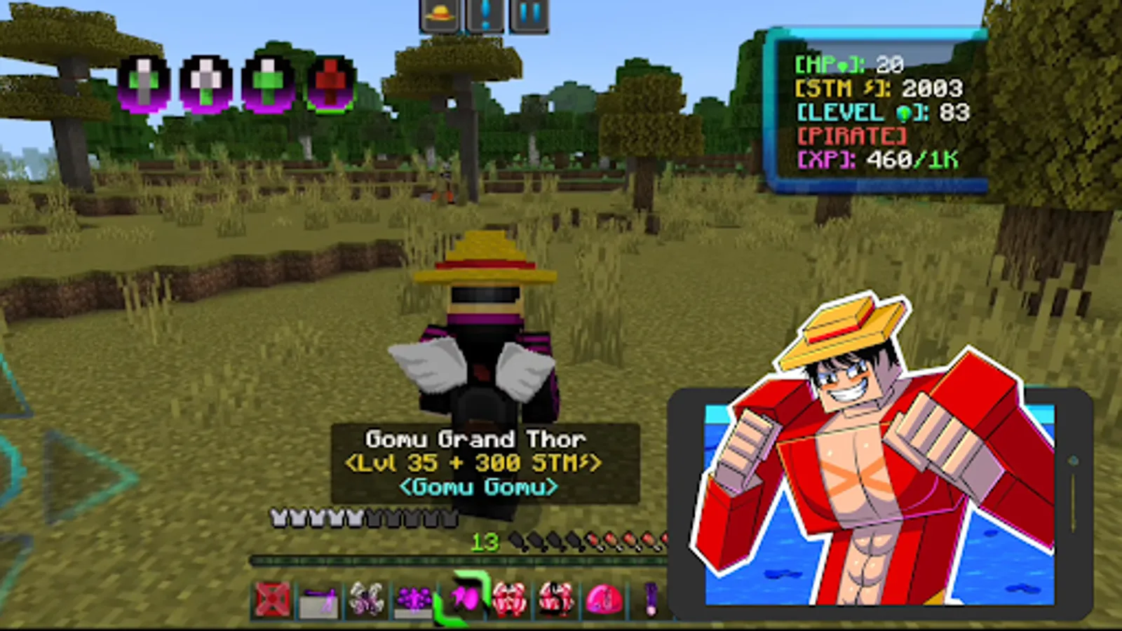 You will not notice how your map evolves, changes will affect inventory, shaders and much more. Large-scale changes to the vanilla game will give the player positive emotions from the adventure. It is also worth noting that the addon is compatible with other anime addons. Your attention will be presented to the gallery of One Piece skins, where you can customize your hero to your taste by choosing one of the popular anime skins.