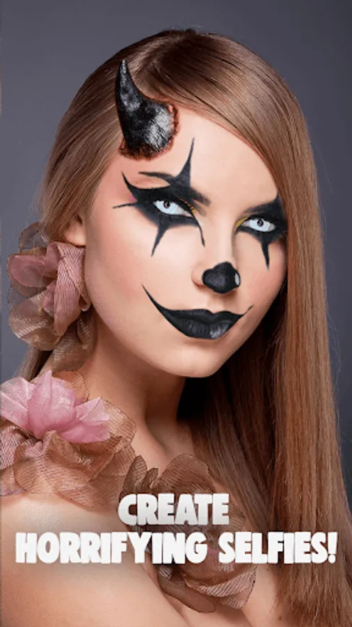 Be the first one to have our original horror face maker app! For all creepy masks we were inspired by Halloween things like costumes, trick or treating, pumpkin carving, jack-o'-lanterns, sweets, candies, and parties! Halloween photo maker allows you to start making frightening photo collages with monster horns, wounds and scars or the traditional scary clown makeup! Install this horror picture editor and get your own clown zombie face! Will you be a horror clown or have a vein face? Find your perfect Halloween faces in our horror camera!
