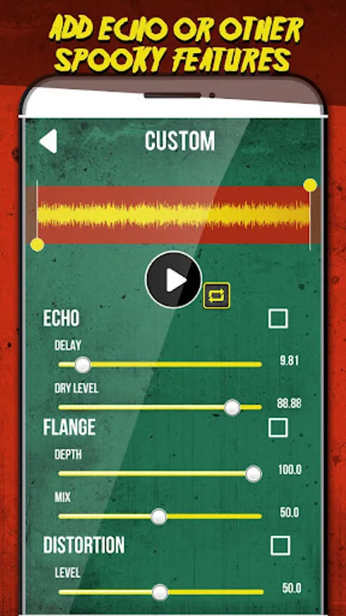 If horror sounds and scary voices frighten you, this audio effects editor and Halloween voice changer can help you perform big scary voice transformations. Your modified voice can be used instead of the same old sounds, so try this scary voice changer and recorder for free and enjoy spooking everyone. Scary Voice Changer - Horror Voice App is a voice modifier that has many options. Download this interesting scary voices changer and have fun audio editing!