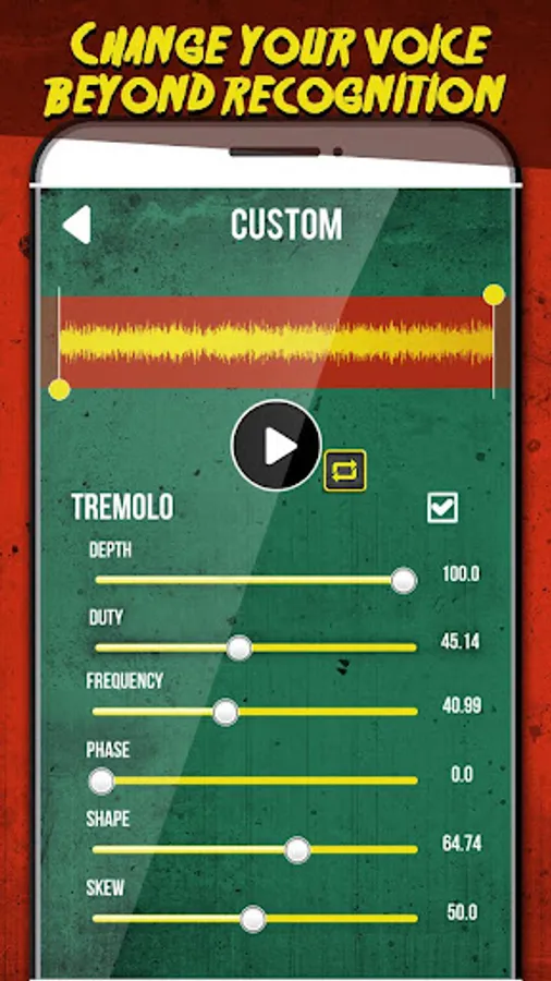 Oh, the horror! Your friend has just received a scary sound recording and is terrified for his life – admit it, changing your voice has never been more entertaining! If you're looking for a quality app, Scary Voice Changer App has it all! This scary voice recorder is finally here. Pick a deep voice and enjoy the variety of sounds that will make even the bravest tremble in fear. Download this impressive voice disguiser and sound recorder app free and enjoy!