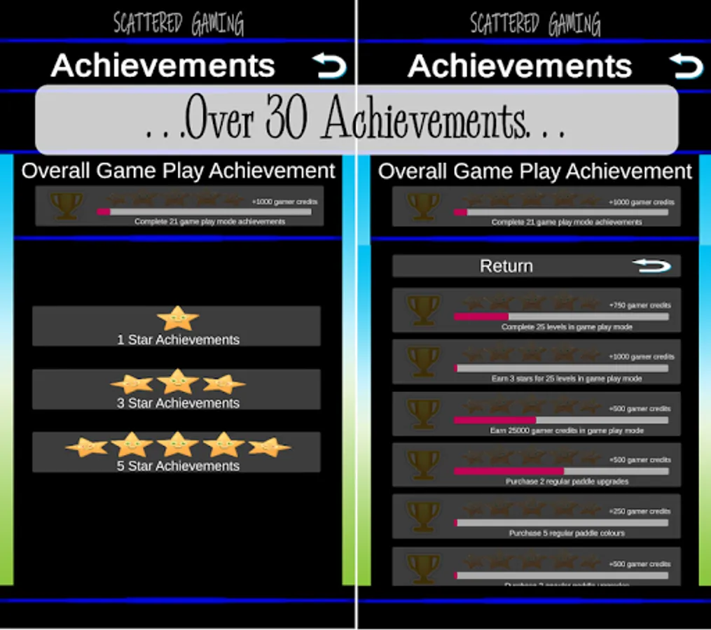 β Over 30 Achievements (each with a star rating)