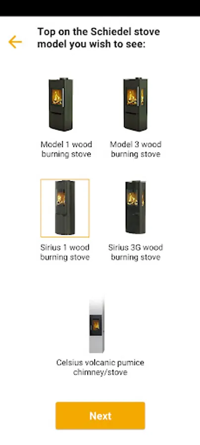 The App gives you a choice of our Sirius, Sargas and Celsius stove range in spectacular fashion. We’ve used the best Augmented Reality technology so you can see a detailed stove and a roaring fire in your room.