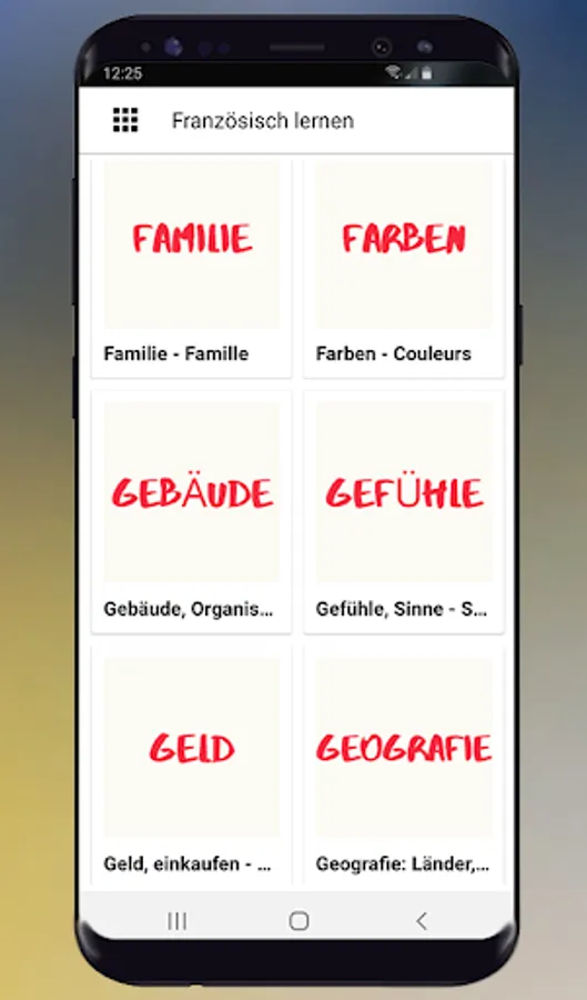 Learn French app completely free. The vocabulary from the different subject areas will be taught to you in the respective context.