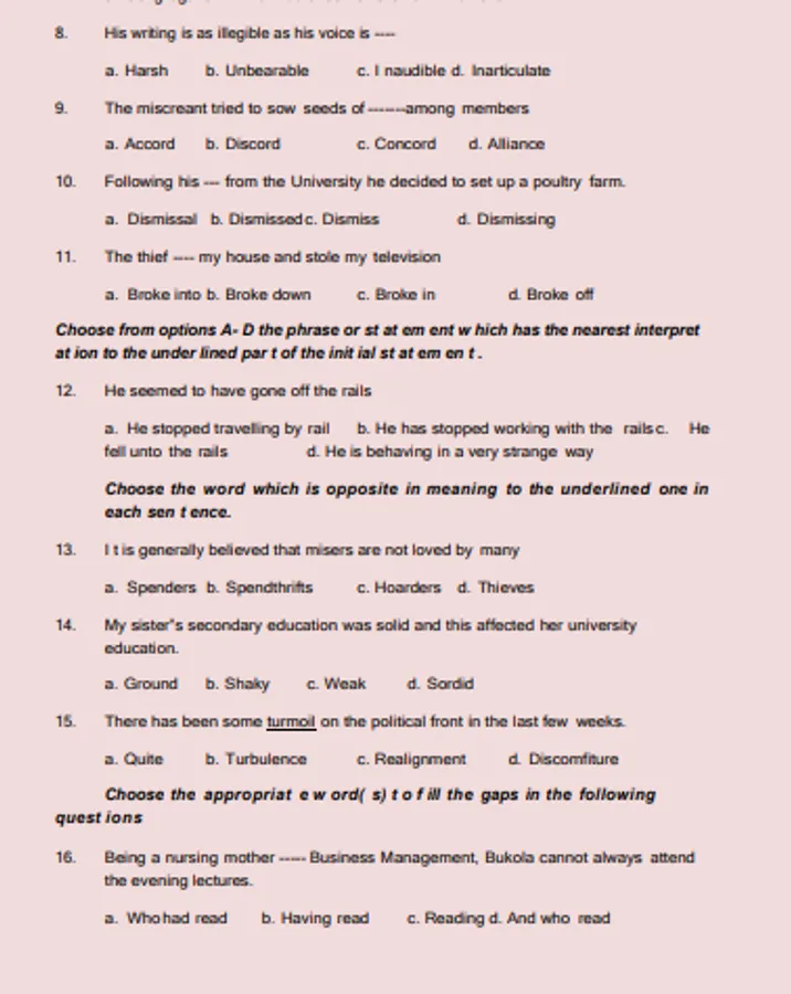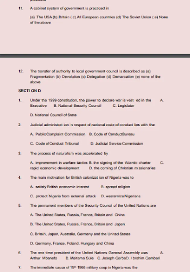 ABU Zaria Post UTME Past Quest