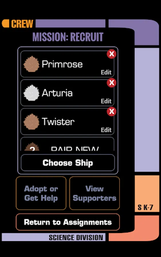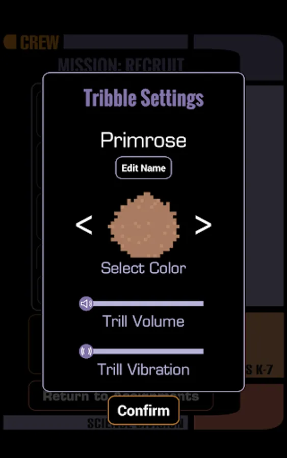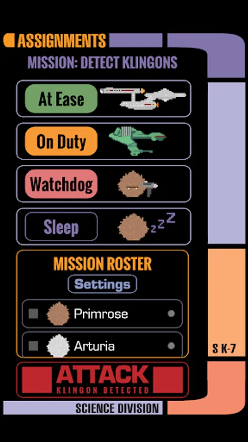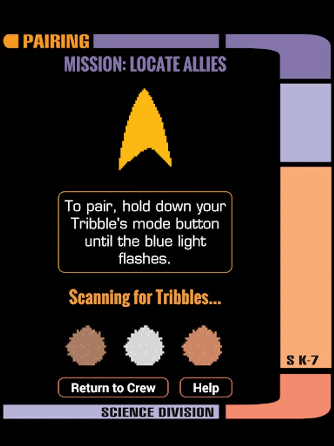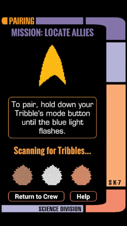 Pair with and name your Science Division Tribble, choose your ship, and assign your Tribble to different modes to carry out your mission: