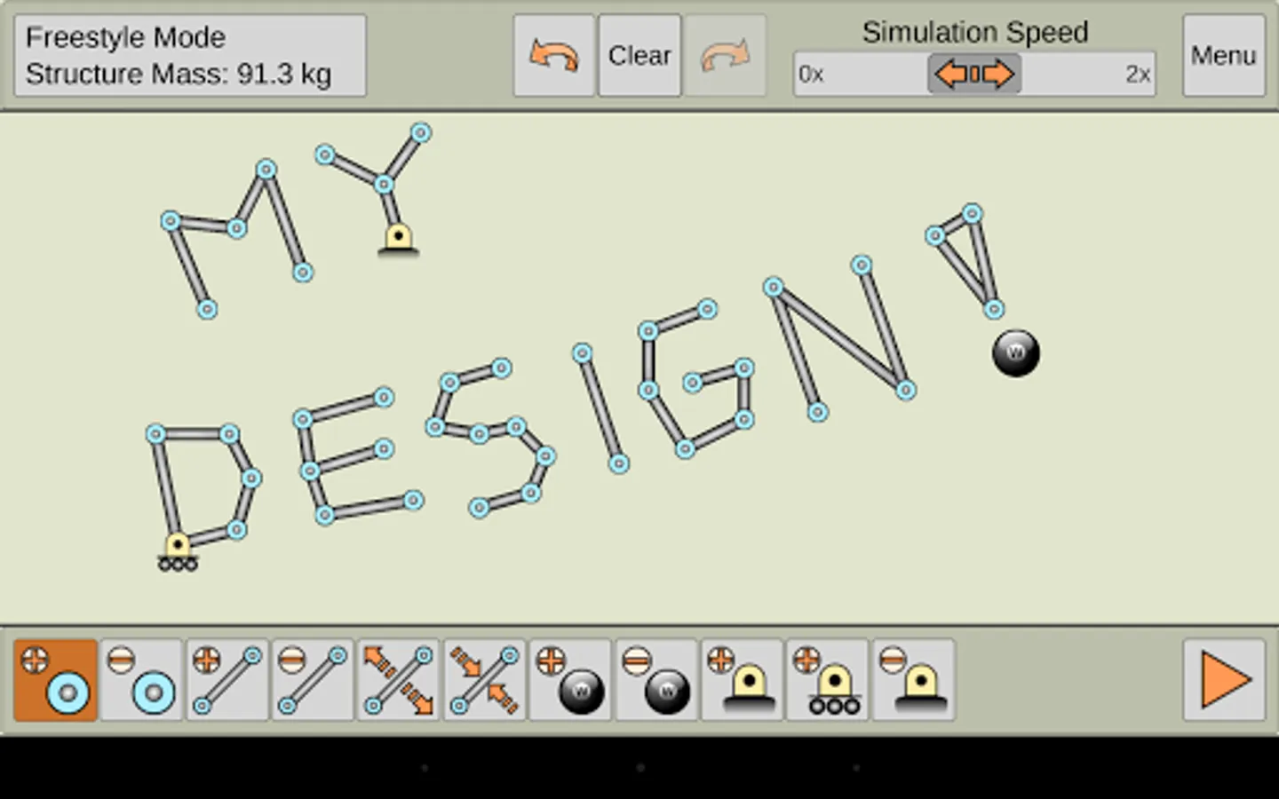 Truss Me utilizes state of the art simulation techniques used by aerospace, mechanical, and civil engineers to provide the most realistic behavior for your trusses. If well designed, your trusses will resist as they would in real life*. If your truss has flaws, the structure will fail realistically*!