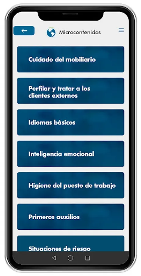 SCORE Móvil has a traditional login system, once you enter the application with your user, you can navigate between the different active courses in which you are enrolled, the application has multimedia and audiovisual content, as well as short evaluations, all of this segmented by categories within the different courses.