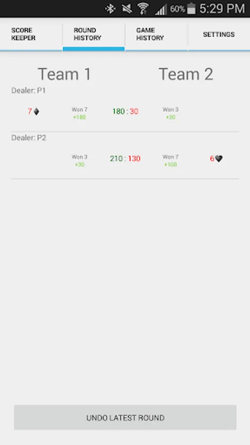 ScoreKeeper Elite not only helps keep the score, but also provides a simple way to view historical information such as current dealer information, previous rounds, as well as game/match history. No more arguing over who won games or if the score was correct; its all now readily available thanks to ScoreKeeper Elite!