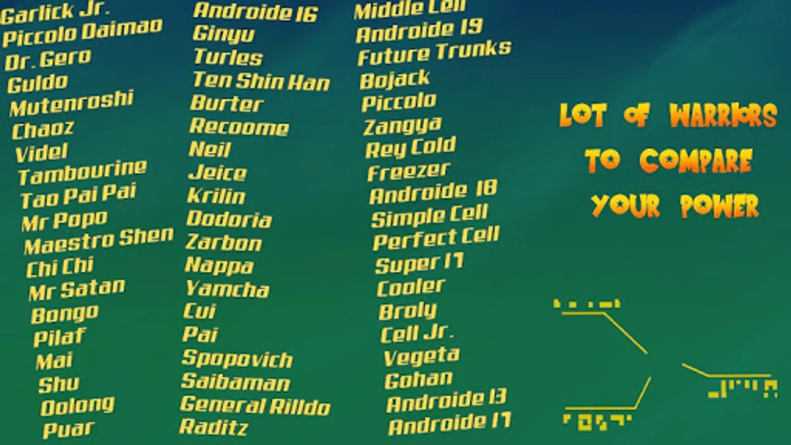 Find out your friends or enemies Ki Power Level and compare it with lot of warriors.
