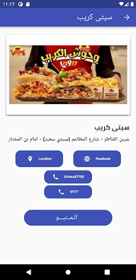 A program for displaying Shebin El-Qanater restaurants, making luxuries for the restaurant, displaying photos of restaurants, phone numbers and photos of the restaurant