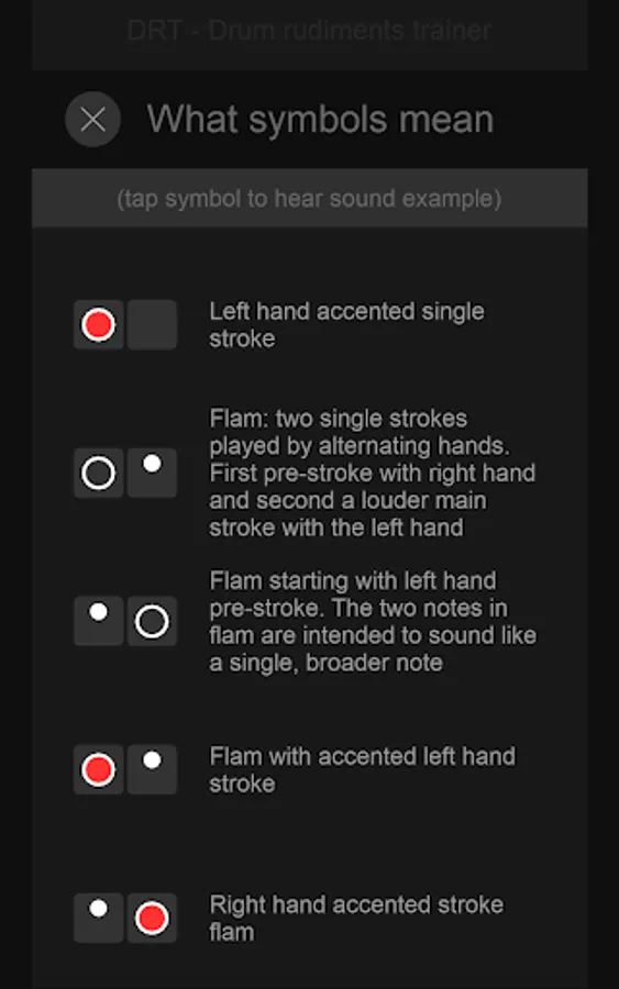 As a beginner drummer myself and having some programming skills I've decided to create mobile application, where I can get easy access to paradiddles and other rudiments in a library with clearly visual representation, on/off metronome and training time statistics for each rudiment in a set.