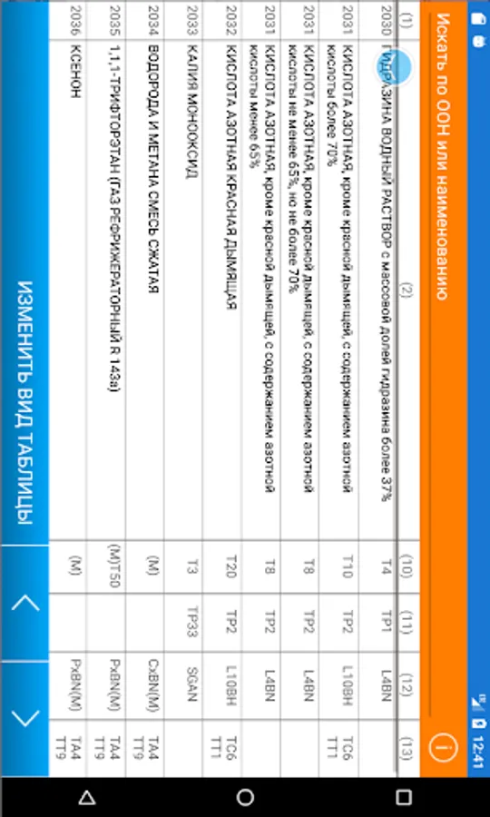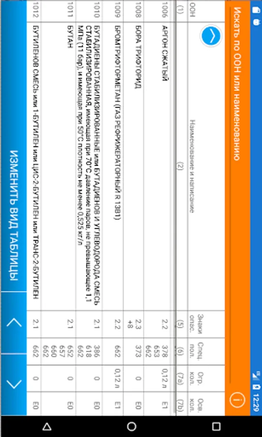 The program is based on Table A of ADR (ADR) and is a mobile directory showing the basic requirements for the transport of dangerous goods. Rotating the device in horizontal mode allows you to view the table in full.
