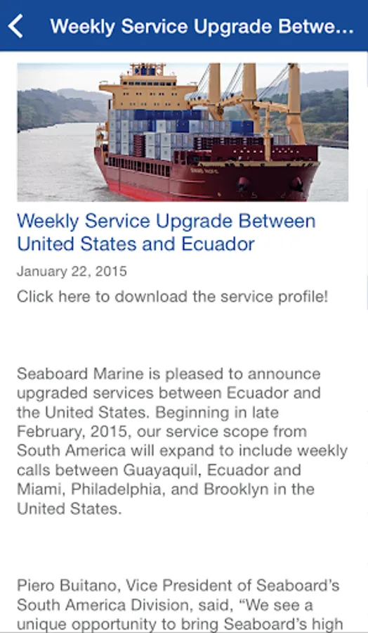 The Seaboard Marine App offers user-friendly mobile services to enhance customer support throughout the ocean transportation process.
