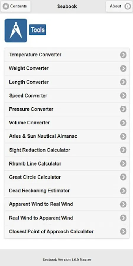 Seabook is an information and knowledge source for marine professionals, sailors as well as sea enthusiasts. Seabook Master contains comprehensive and detailed information on the profession in a comfortable language with graphics. Seabook fits to use at sea with offline accessibility and best user interface. The tools help navigational and technical computations and conversations at ease.
