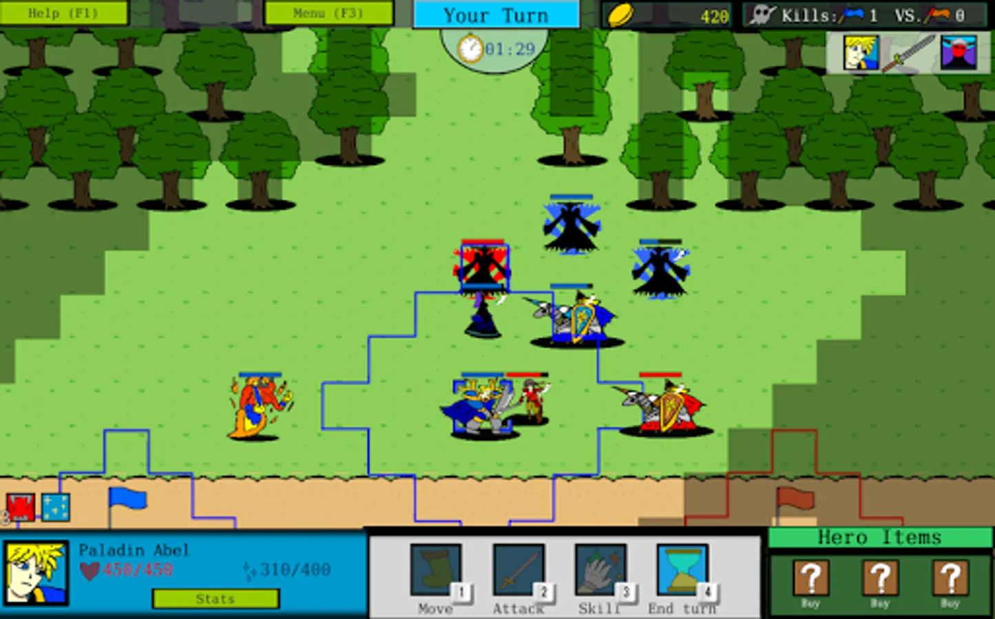 - a hero/unit can use "move", "attack" and "skill" once per turn.