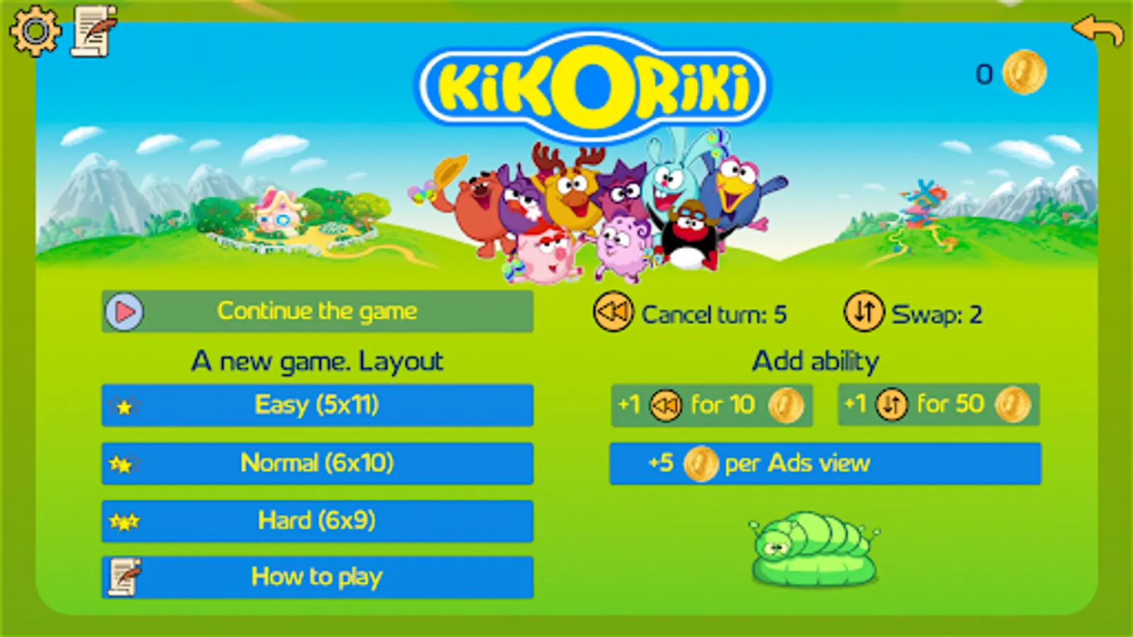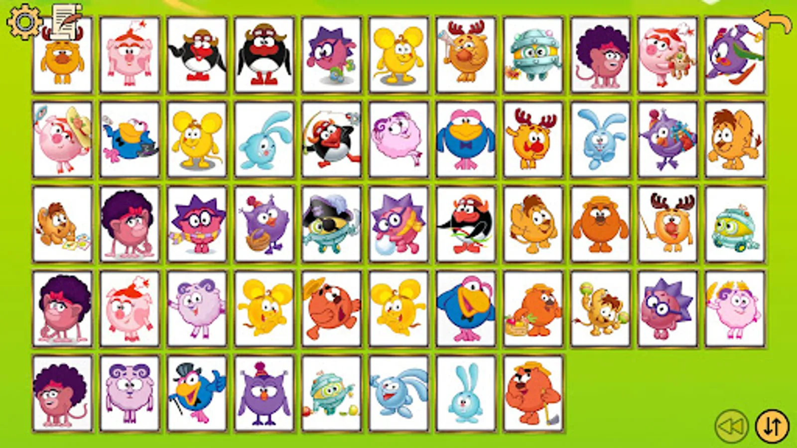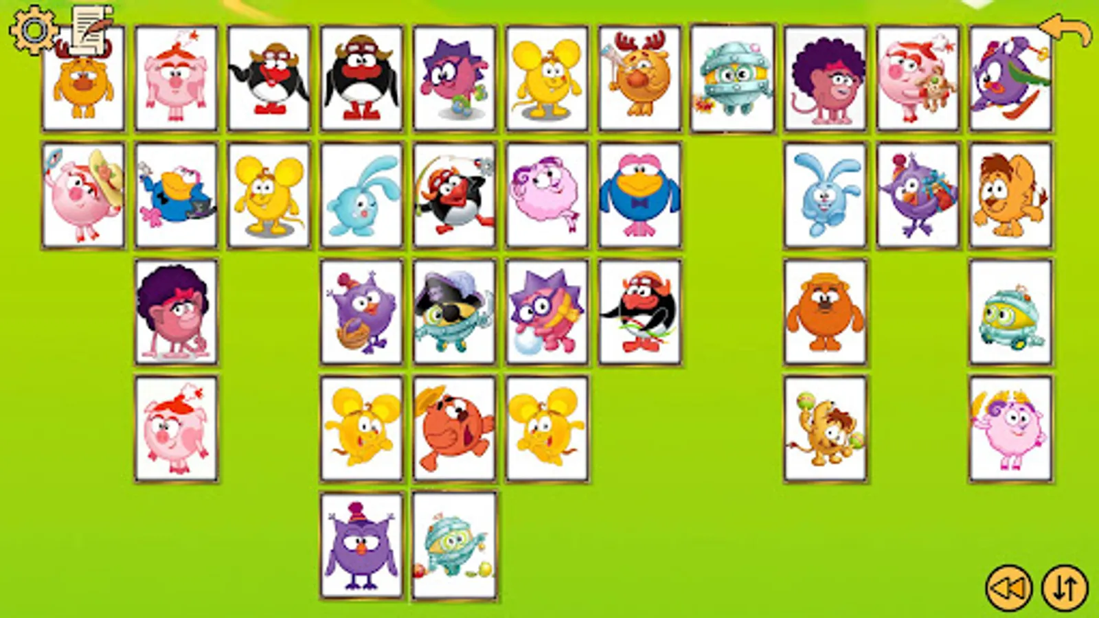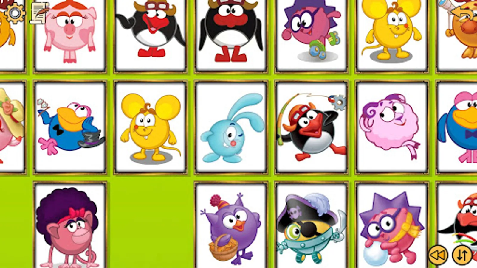 The game involves 13 characters from Kikoriki with 4 cards each, the goal of the game is to find a pair of Kikoriki cards and completely clear the playing field by removing all the cards.