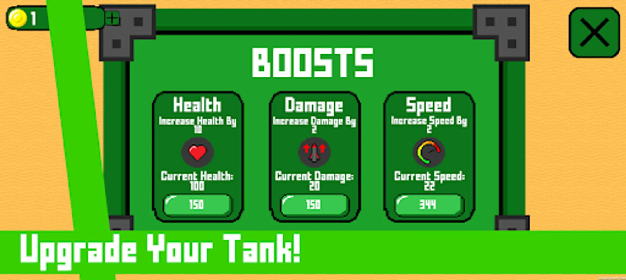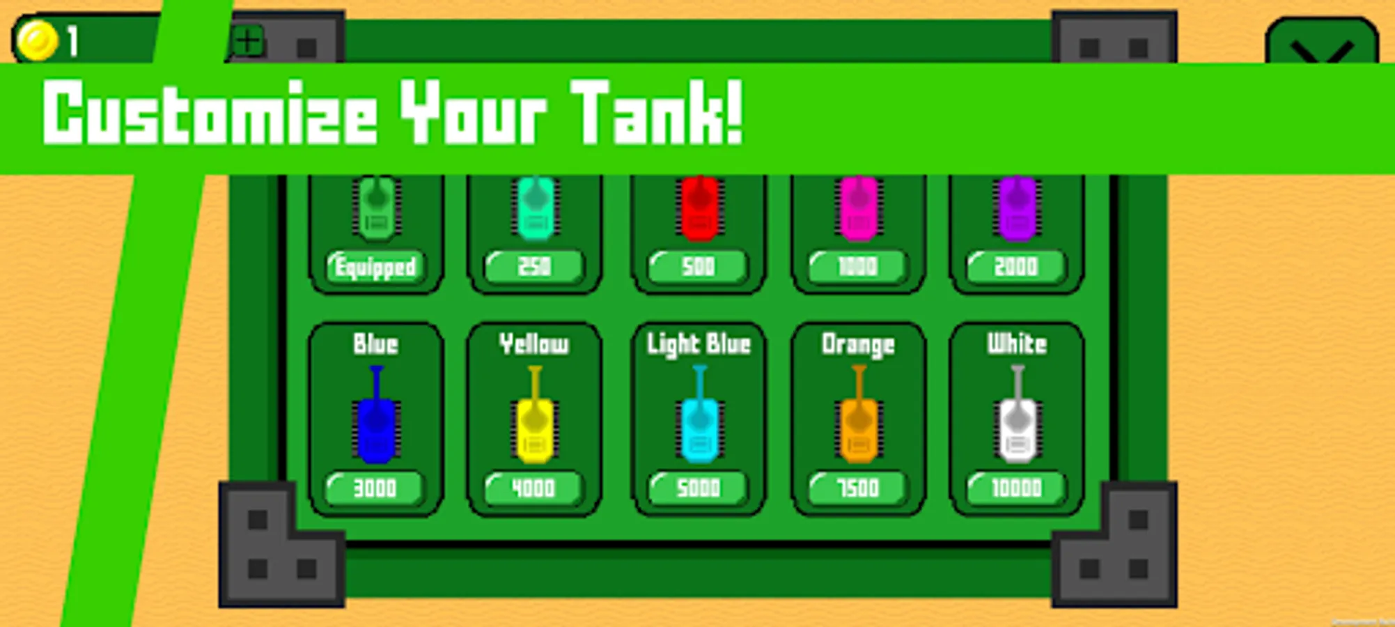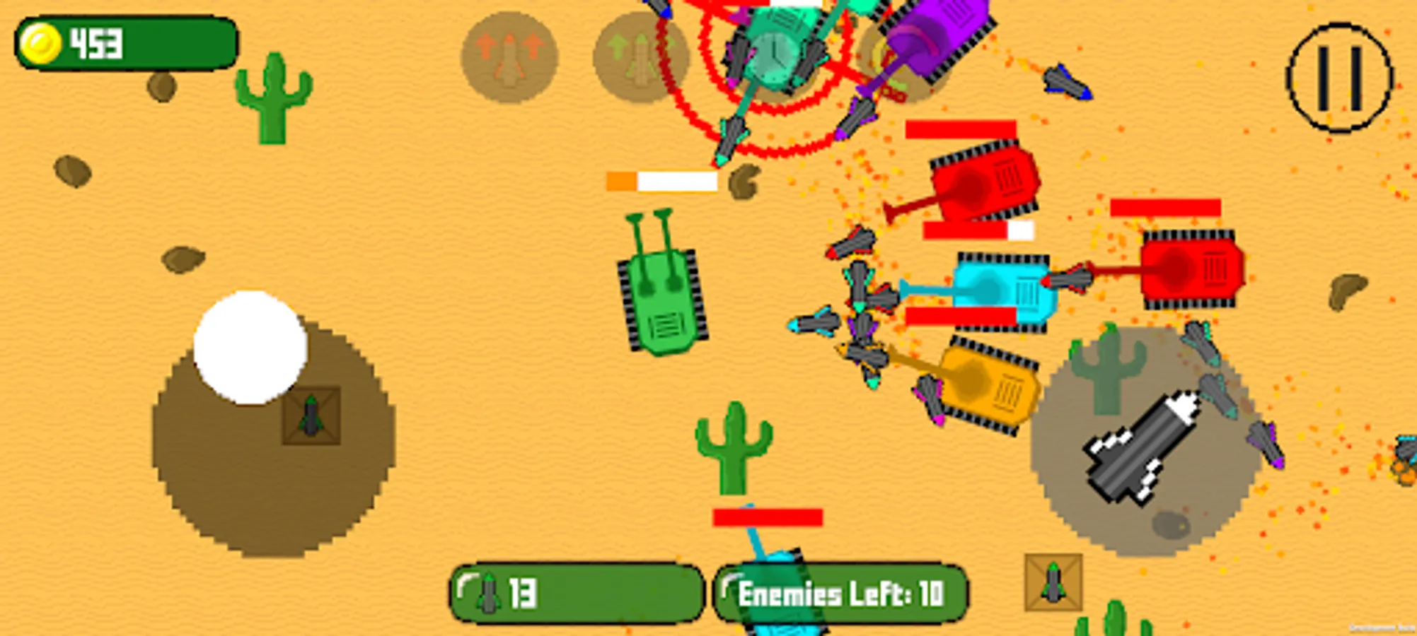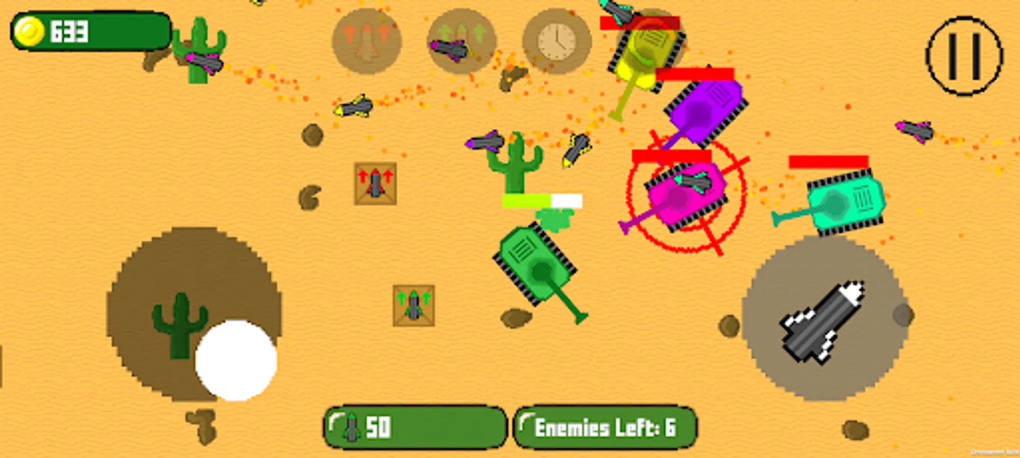 Use the joystick to dodge enemy missiles, but be careful, your tank isn't that fast. You can upgrade your speed, damage, and health in the shop to make everything easier. Eliminate enemy tanks by shooting them down using your missiles. As you progress, the rounds will get harder and the swarms of tanks will be larger.