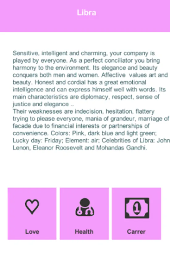 My Horoscope App offers several options for you to know the main characteristics of your sign.