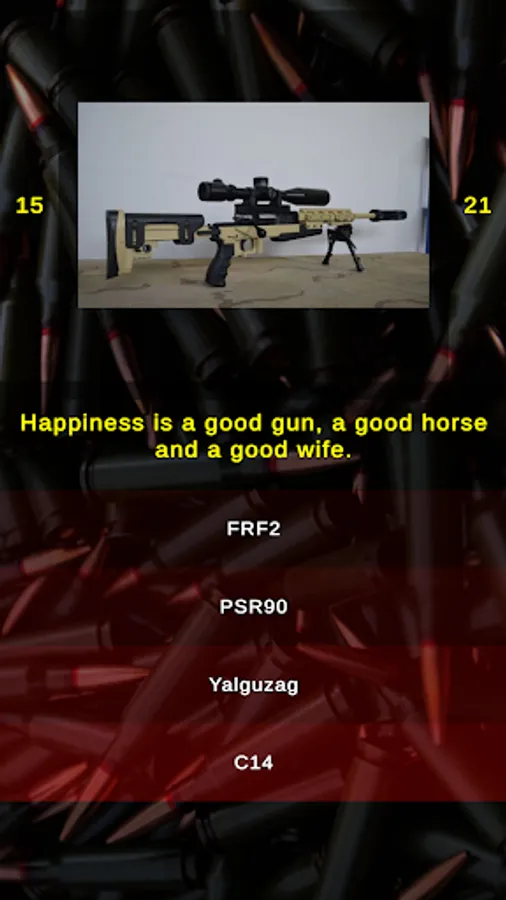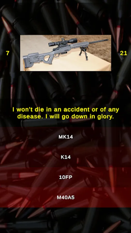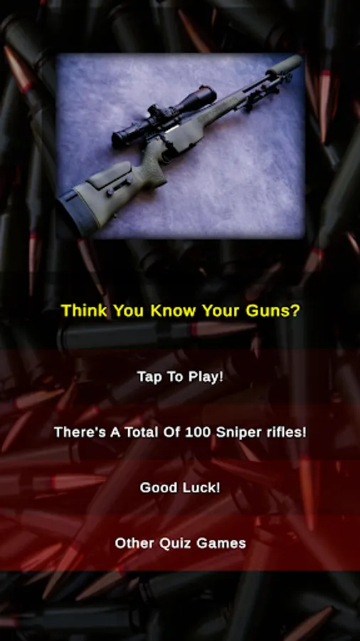 Good luck completing all 100 sniper rifles in a row! There are few who can but thankfully there's a variety of other quiz games for all levels of firearm expertise. Be sure to check out the Assault Rifle Machine Gun Quiz, the Modern Combat Shotgun Quiz, the Tactical Submachine Gun Quiz, the Handgun Pistol Revolver Quiz and the Ordnance Rocket Launcher Quiz!