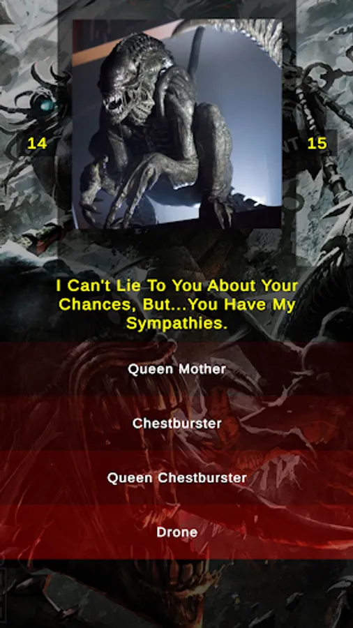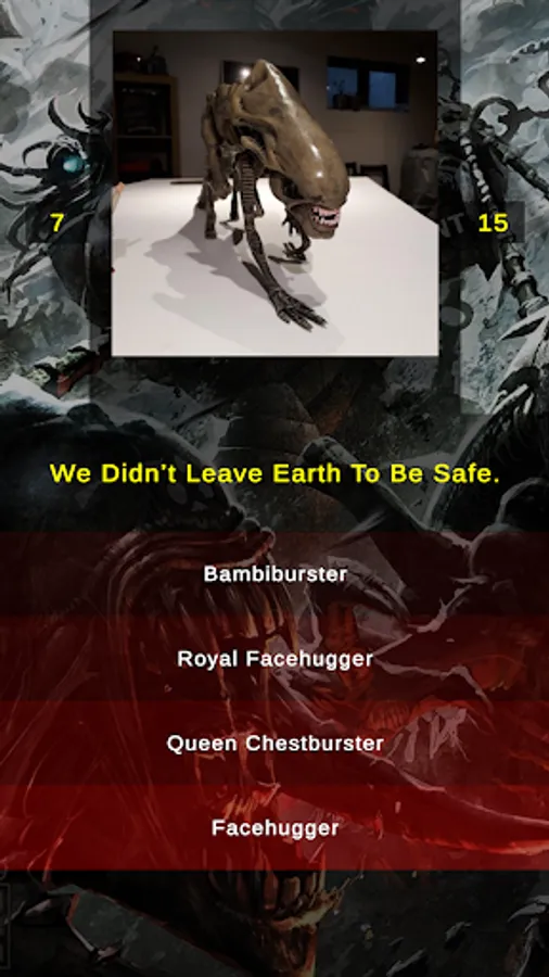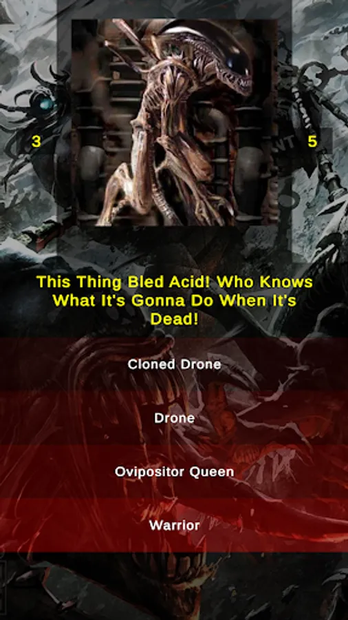 Xenomorph Alien Quiz is pretty straight forward. An image will appear of a Xenomorph alien and you must guess the Xenomorph breed. Guess all the Xenomorph breeds in a row correctly and there's a prize in it for you!