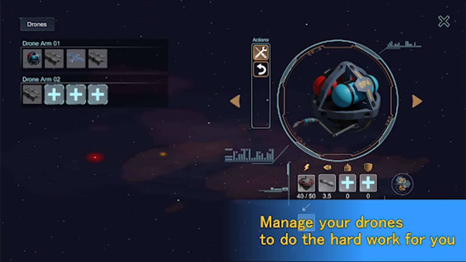 Command drones to mine resources, build and repair your station, or venture out to maintain your security.