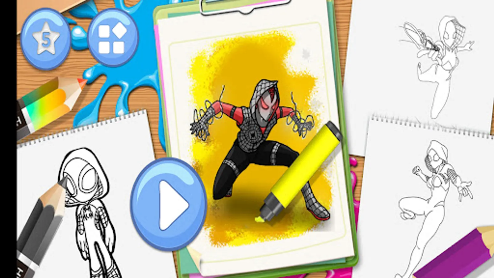 Coloring Book Gwen Stacy is the Best game designed for all ages, to explore their creativity and have fun and free. you can paint and enjoy this learning coloring game, it has bright color options to choose from.