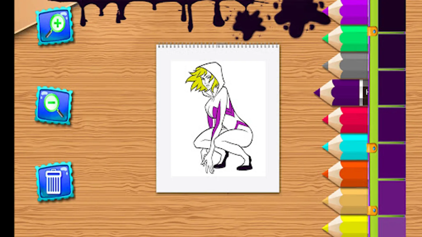 Gwen Stacy Drawing Book Pages Coloring Book is a fun game for all ages that allows you to paint and color in real form, in the same way as on paper, using different options to paint as brushes or color pencils.