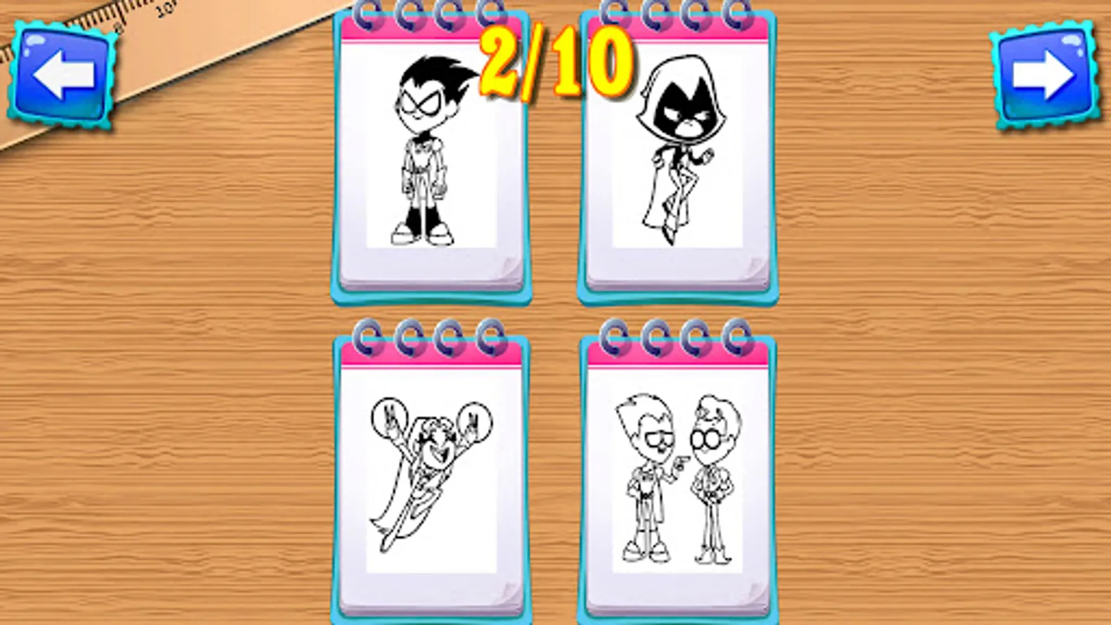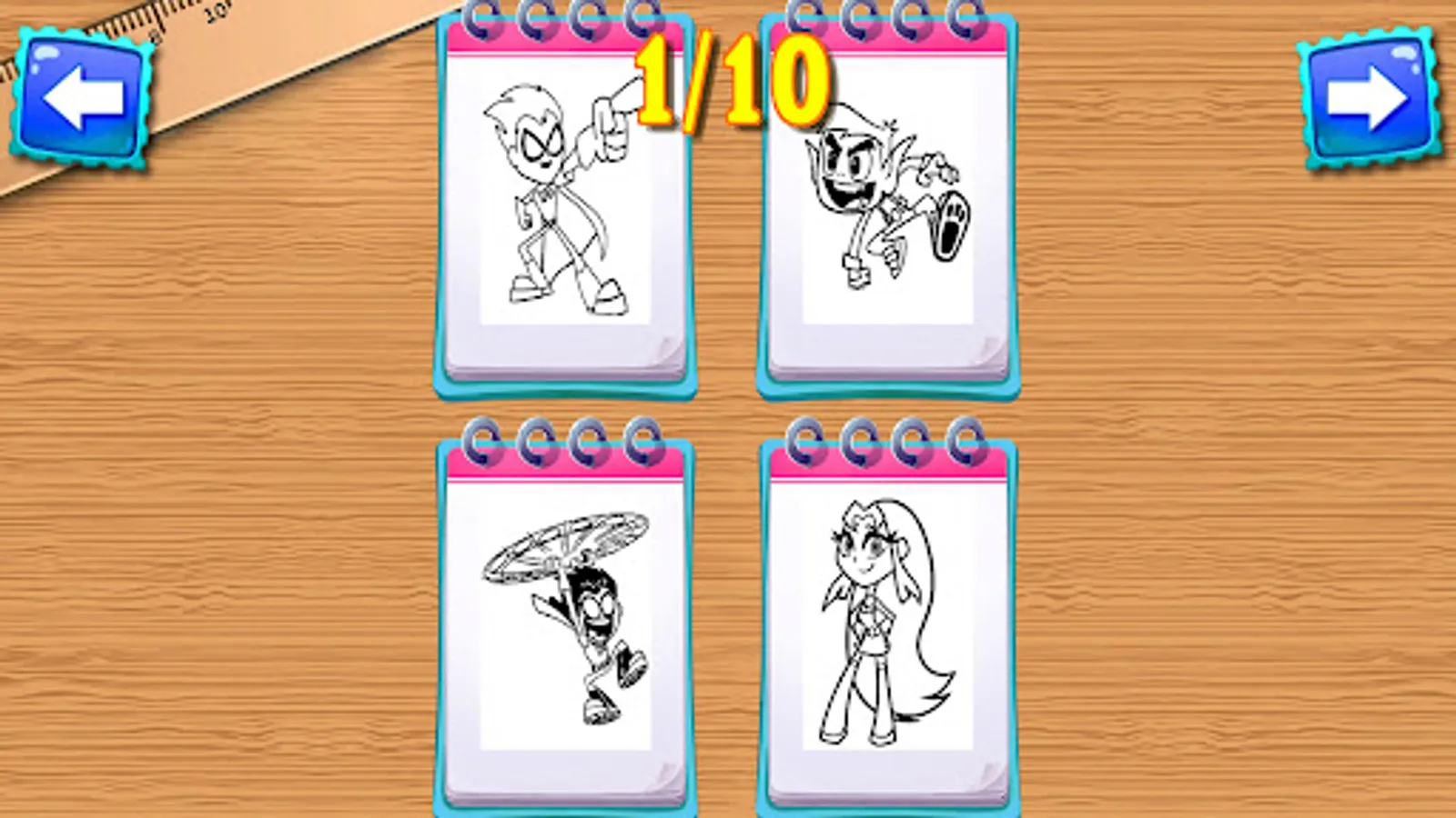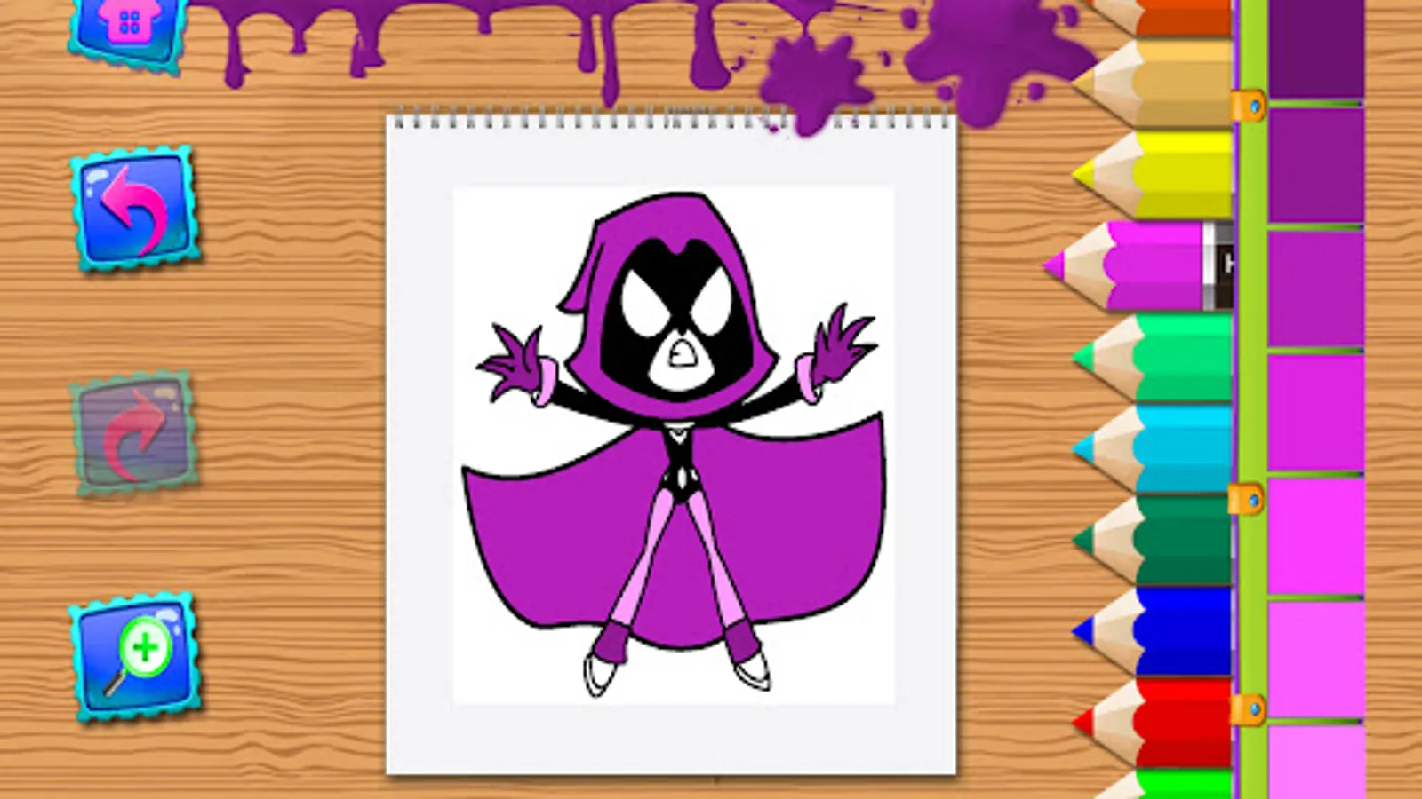 Teen Go Titans Heroes Drawing Book Pages Coloring Book is a fun game for all ages that allows you to paint and color in real form, in the same way as on paper, using different options to paint as brushes or color pencils.