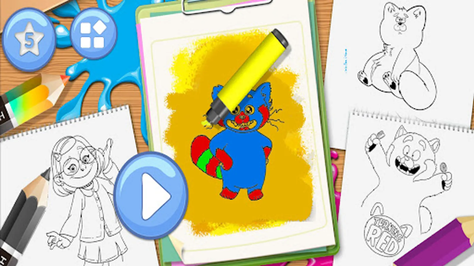 Turning Red Drawing Book Pages Coloring Book is a fun game for all ages that allows you to paint and color in real form, in the same way as on paper, using different options to paint as brushes or color pencils.