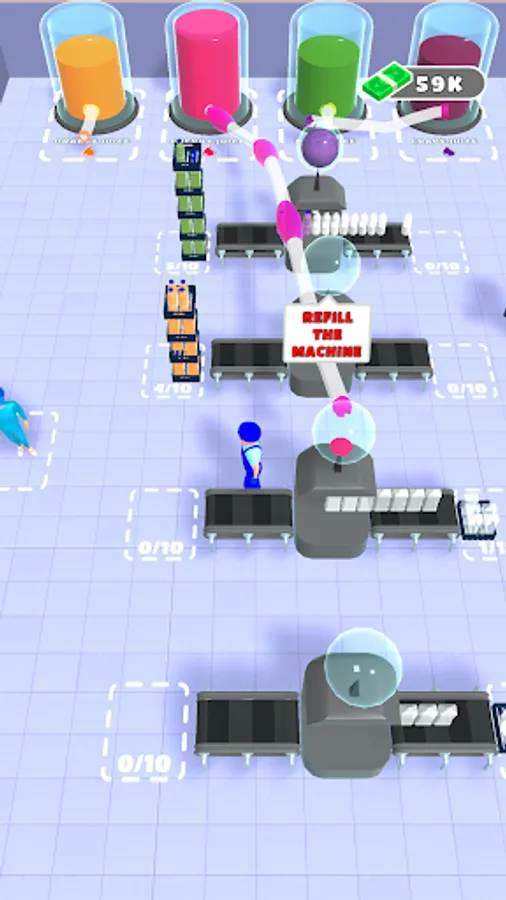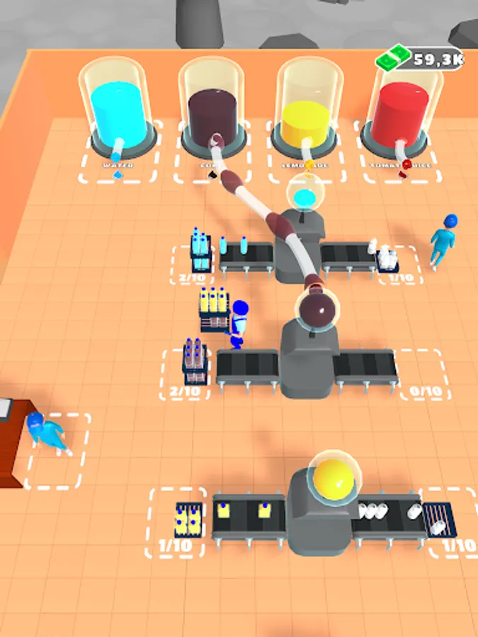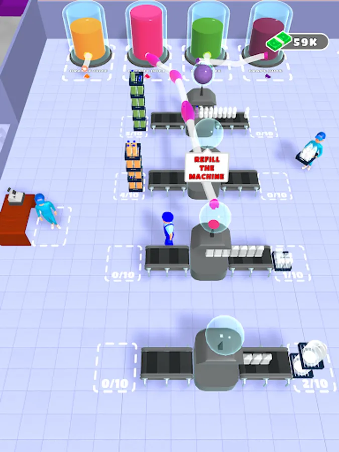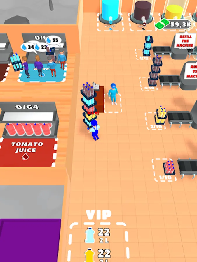 How many types of bottles do you know? Here you can connect four types of liquids to the machines, produce bottles, sell to the customers and start your bottle empire! Fill your packages, get ready and start your adventure!