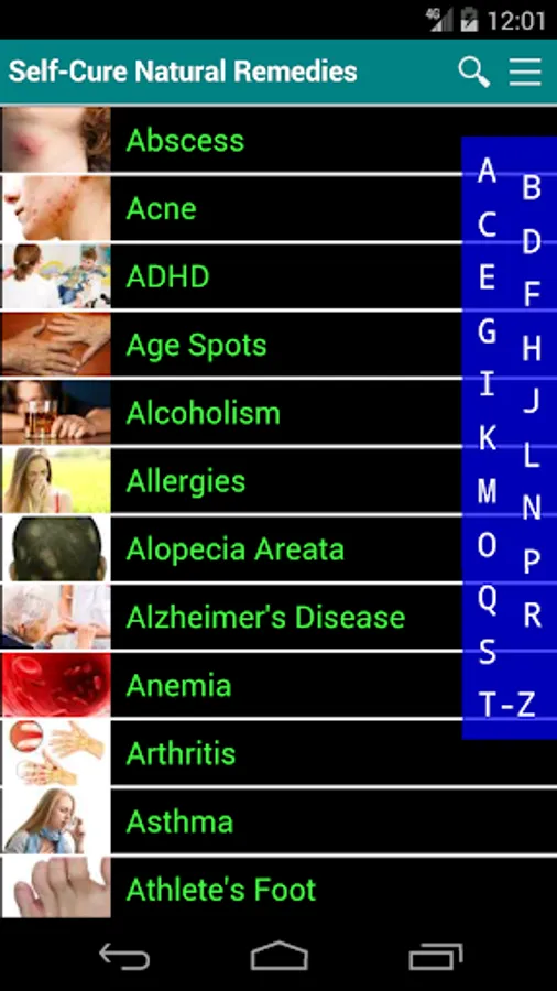 From healing an abscess to treating yeast infection, Self-Cure Home Remedies App provides health information of remedies, reliefs, treatments, procedures, cures and cares for all kinds of disorders, diseases, illness, symptoms, ailments and conditions.