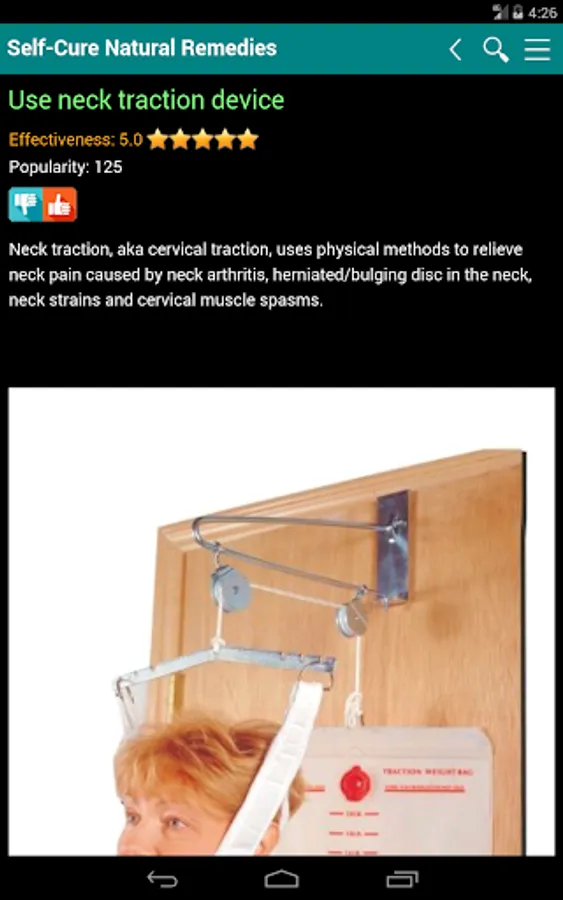 Many treatments are natural cure and home remedy like using herbs, essential oils, nutrition supplements, change of diet and life styles and other nontraditional, alternative medical procedures such as Chinese or Ayurveda medicine, acupuncture, massage, yoga, etc. For each of the listed remedy, it includes general description, usage & dosage details and popularity and effectiveness rating of remedy. It also lets user add and view comments from other to share health knowledge.