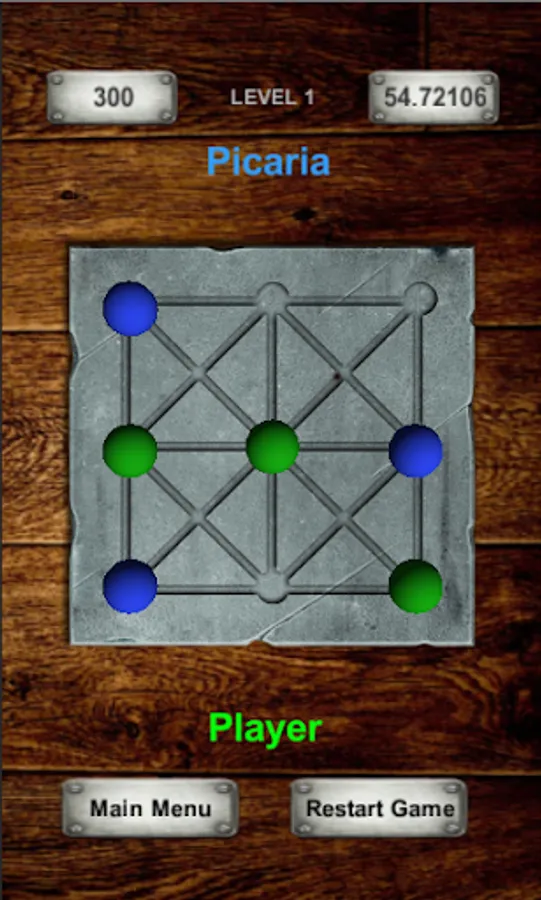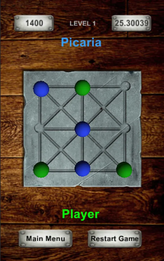 There are multiple levels of Picaria. The first level is simpler and the difficulty level increases with levels. There are two versions of the game - one with 9 spaces or intersection points, and the second uses 13 spaces or intersection points. The rules are the same for both the versions.