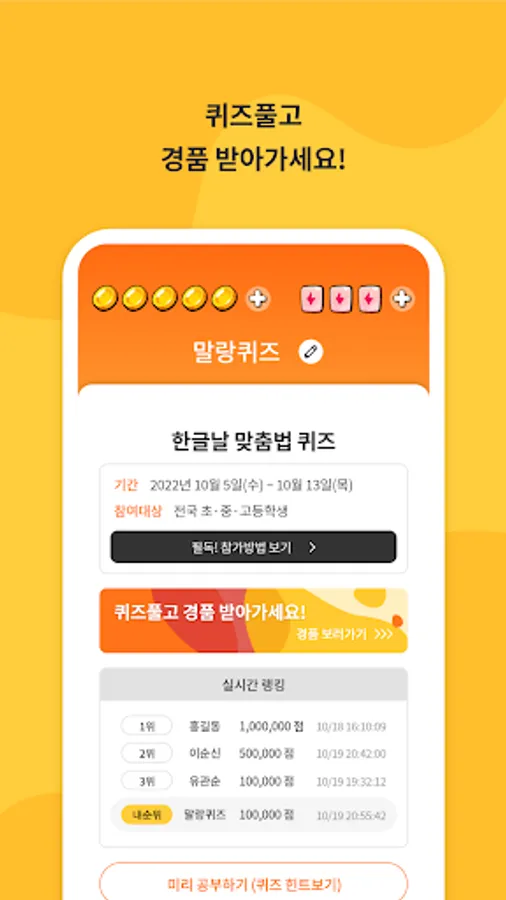 o We continuously select high scorers who applied for ranking by unit and present a small gift prepared by We Quiz.