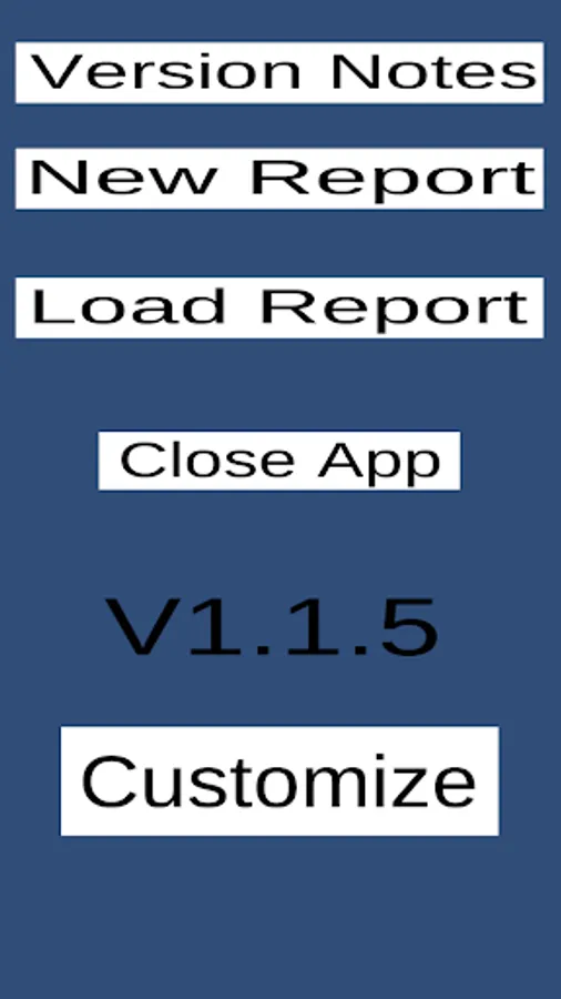 How it works: To make a report, press the "new report" button and the screen will automatically slide to a new page with report information for you to fill. Once you are done and happy with the information, you can save the report and then view it by going back to the menu and pressing "load report". You can also export your report as a .TXT or .PDF document or email the export with no sign-in required, it's that simple!