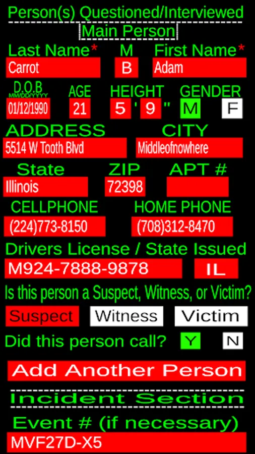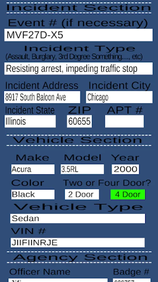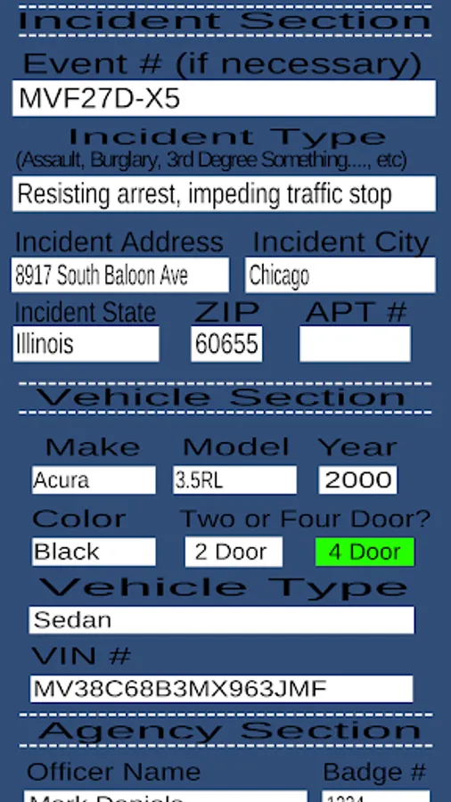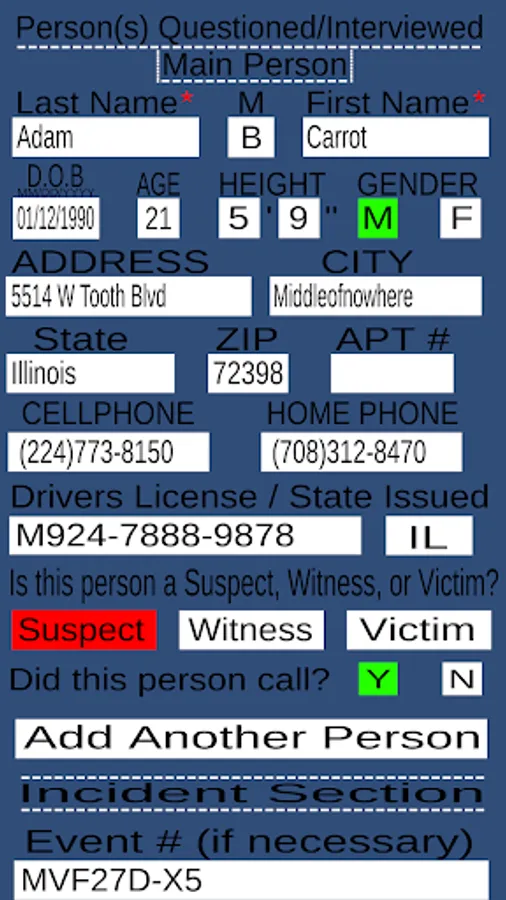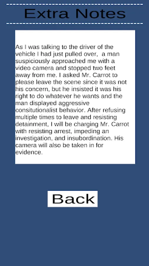 By using this app, Police Notes in a situation like this can allow you with ease and simplicity to store the information that you need from each person in a back to back fashion, and at your appropriate time will allow you to take and store images for future analyzing, all in one place!