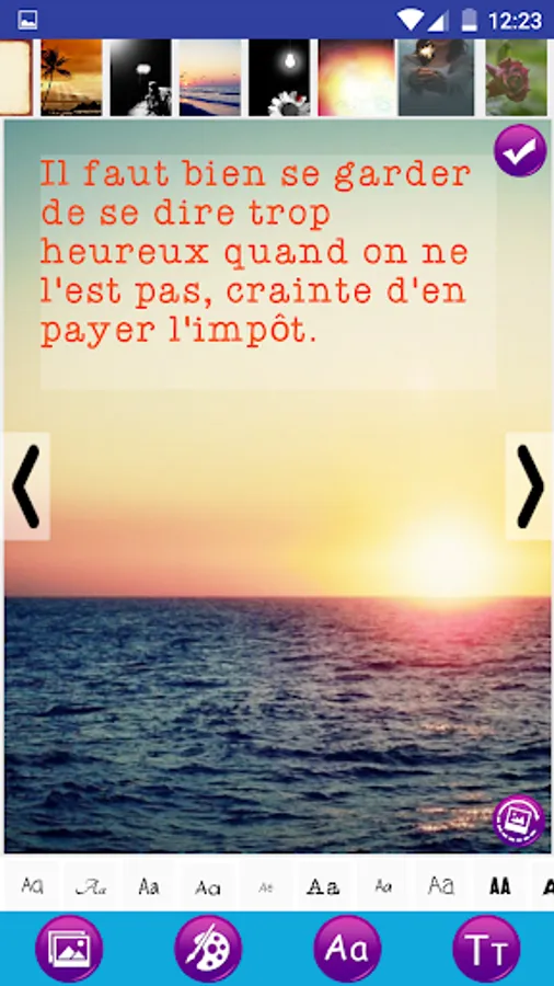 Concevoir et envoyer des citations de texte ou d'image avec notre application est aussi simple que: