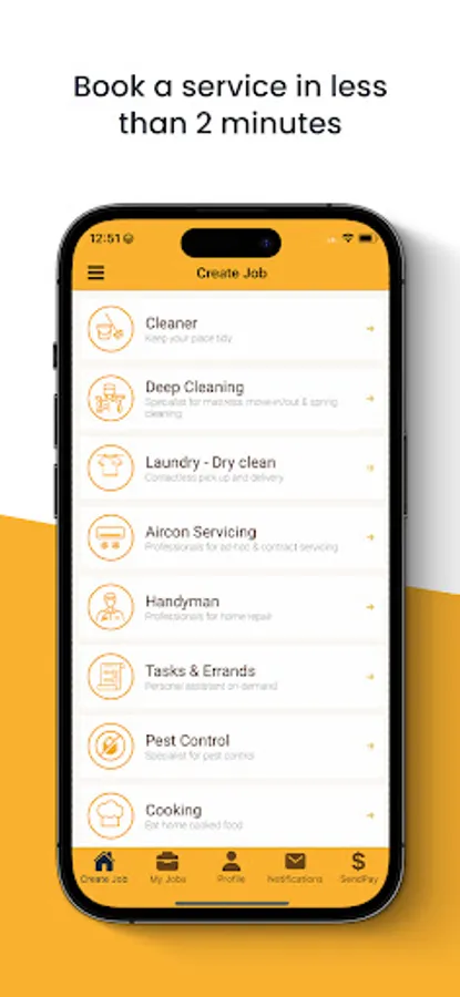 The process of booking and completing the service on SendHelper app is easy and simple: