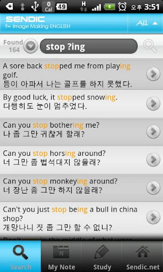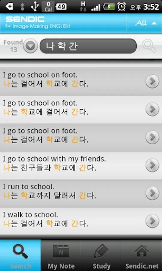 *** SENDIC is an application that allows you to search the English sentence, not a dictionary or translator. So when you put the whole sentence search is not only the need to search using key words in the search string that you want to be searchable. If 'school, school, school, etc. If you want air at the same time search for "school?" If you search you will be able to retrieve them one at a time variant of the 'school'.