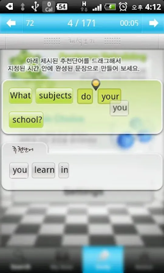 7. Study the game features English writing skills for learning and repetition of two ways: