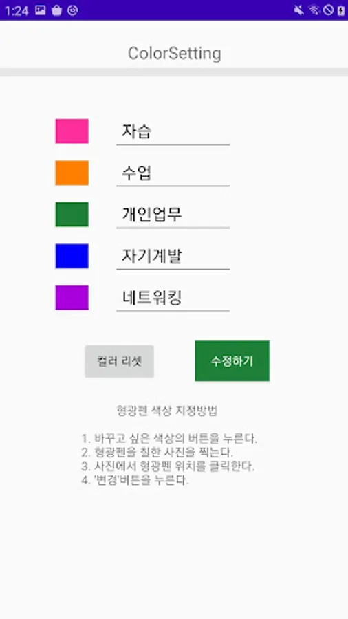 This app uses 3P Binder, and is designed for those who have checked color on a weekly schedule.