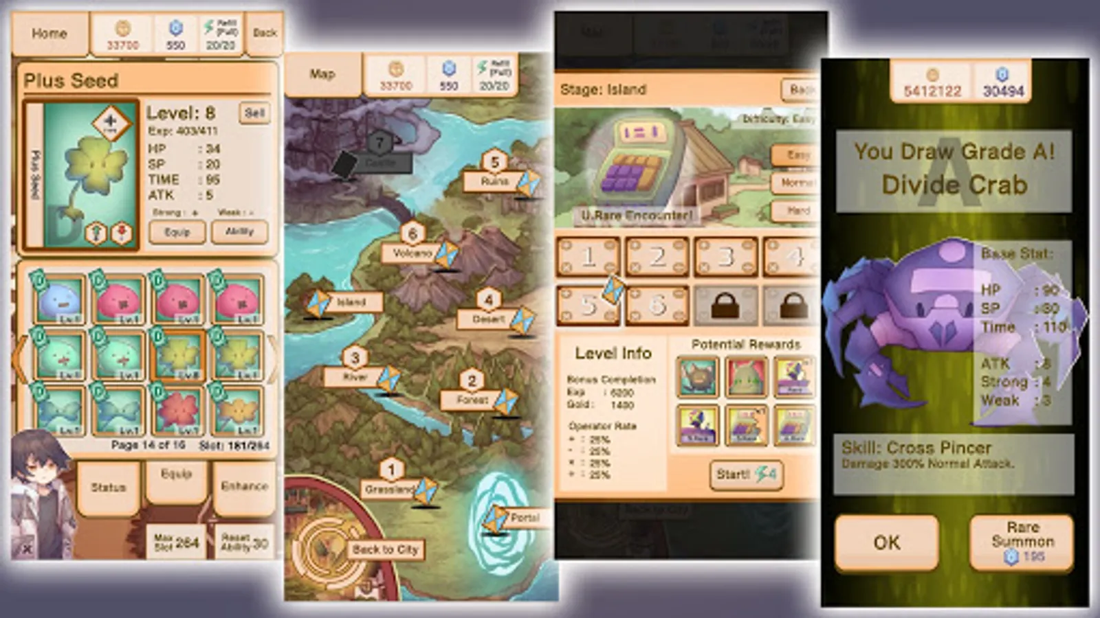 ★ Each Guardian has their grade, strong and weakness type (plus, minus, multiply, divide) that affect the battle.