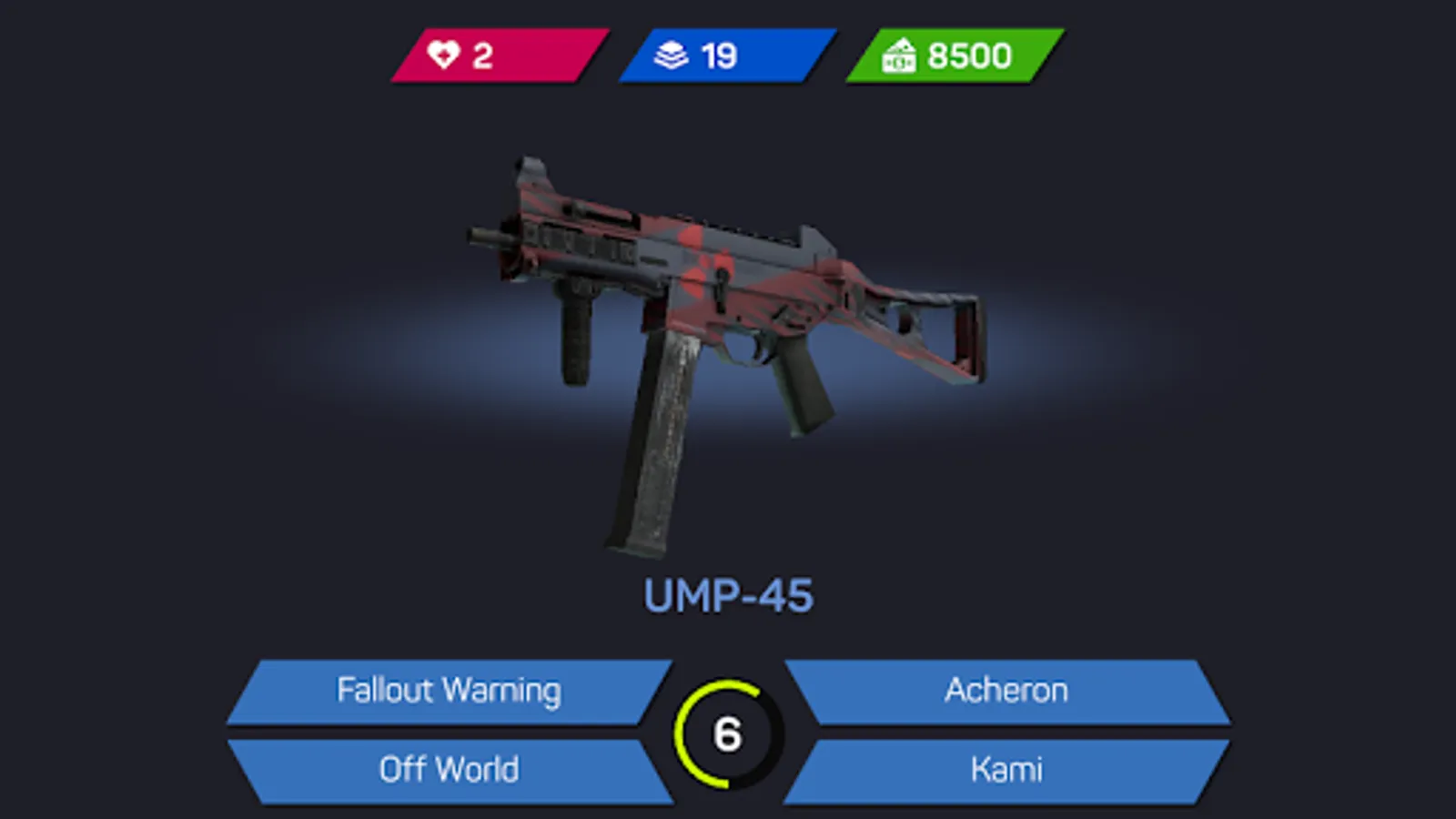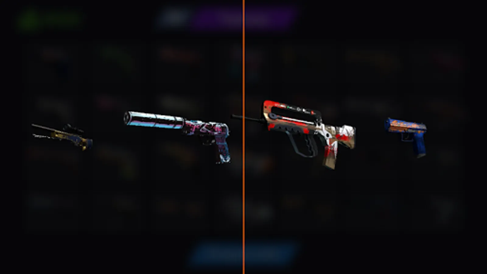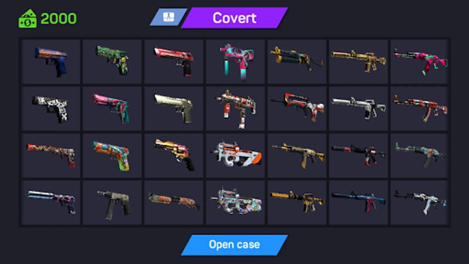 - The game contains all the current skins from the game CS: GO (more than 1000 skins)