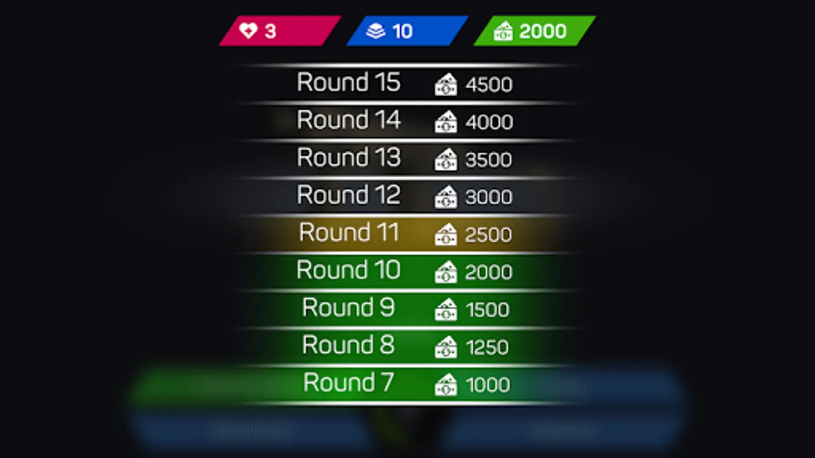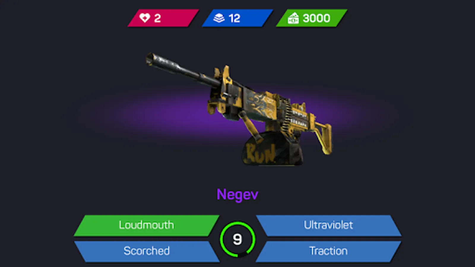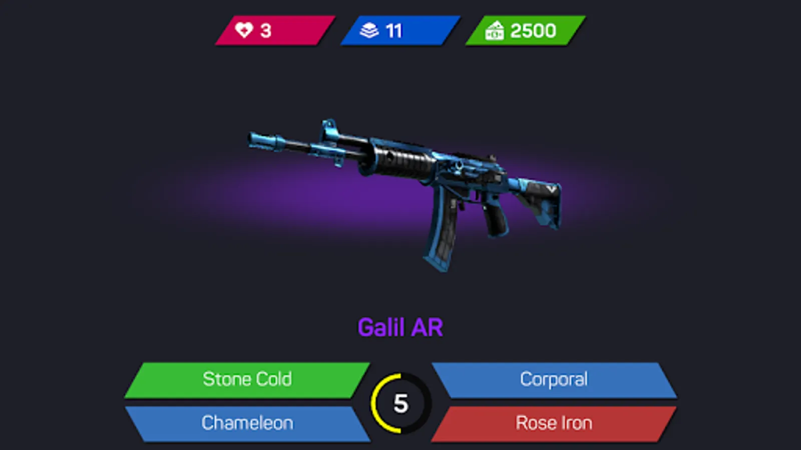 In the game you need to guess the skins of the game CS: GO. Guess the correct answer from four options, get money, move on rounds. Make no mistake, you have only 3 lives and 10 seconds to answer! Complete 30 rounds and get the biggest prize!